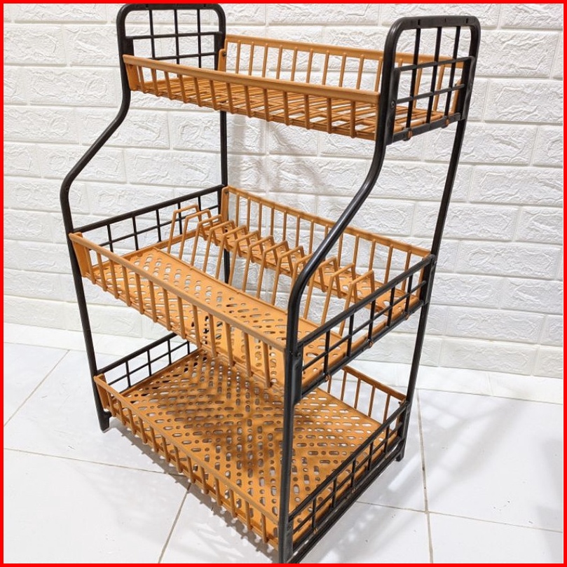 Rak Piring Plastik 3 Susun Coklat Murah Baskom Rak Pengering Peralatan Dapur Minimalis Serbaguna