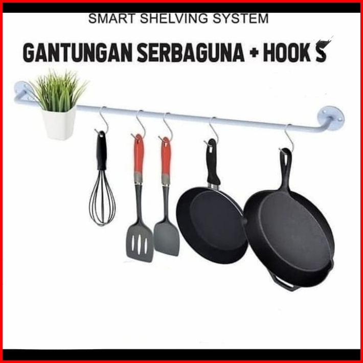 Gantungan Kitchen 120 Cm 10 Kait Panci Alat Dapur Kamar Mandi Grsr X