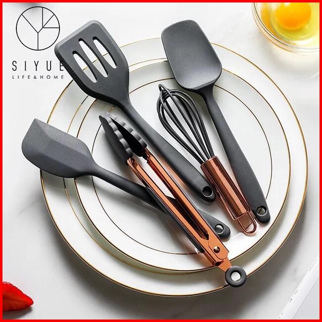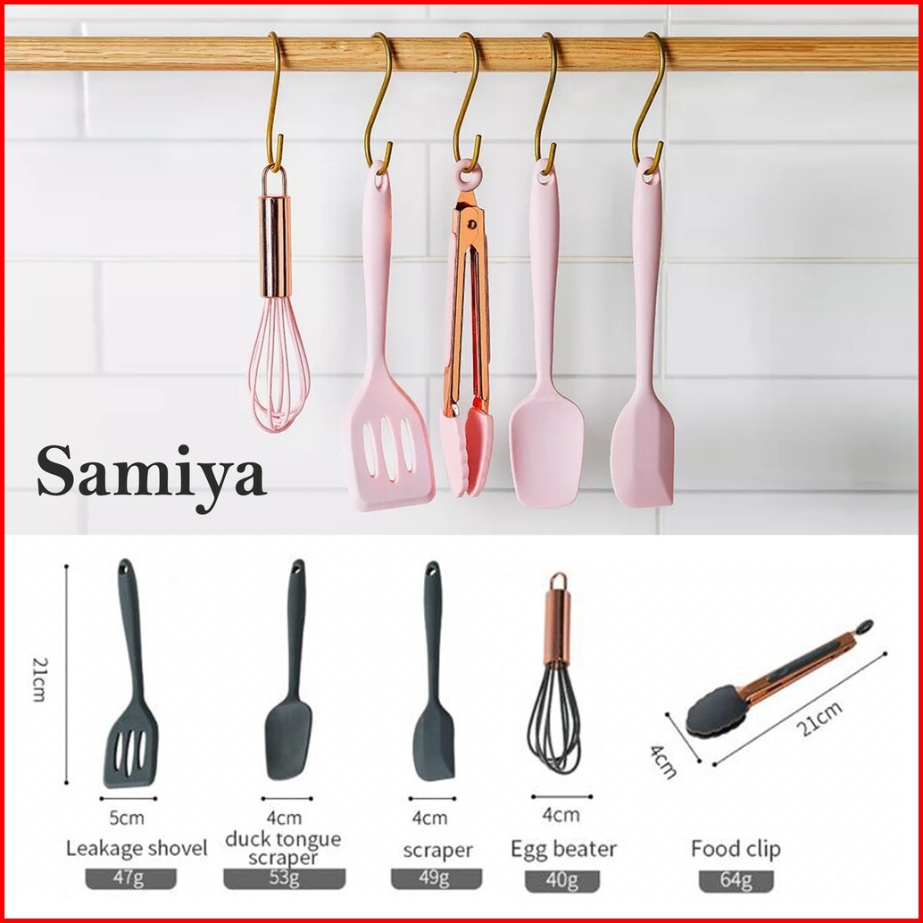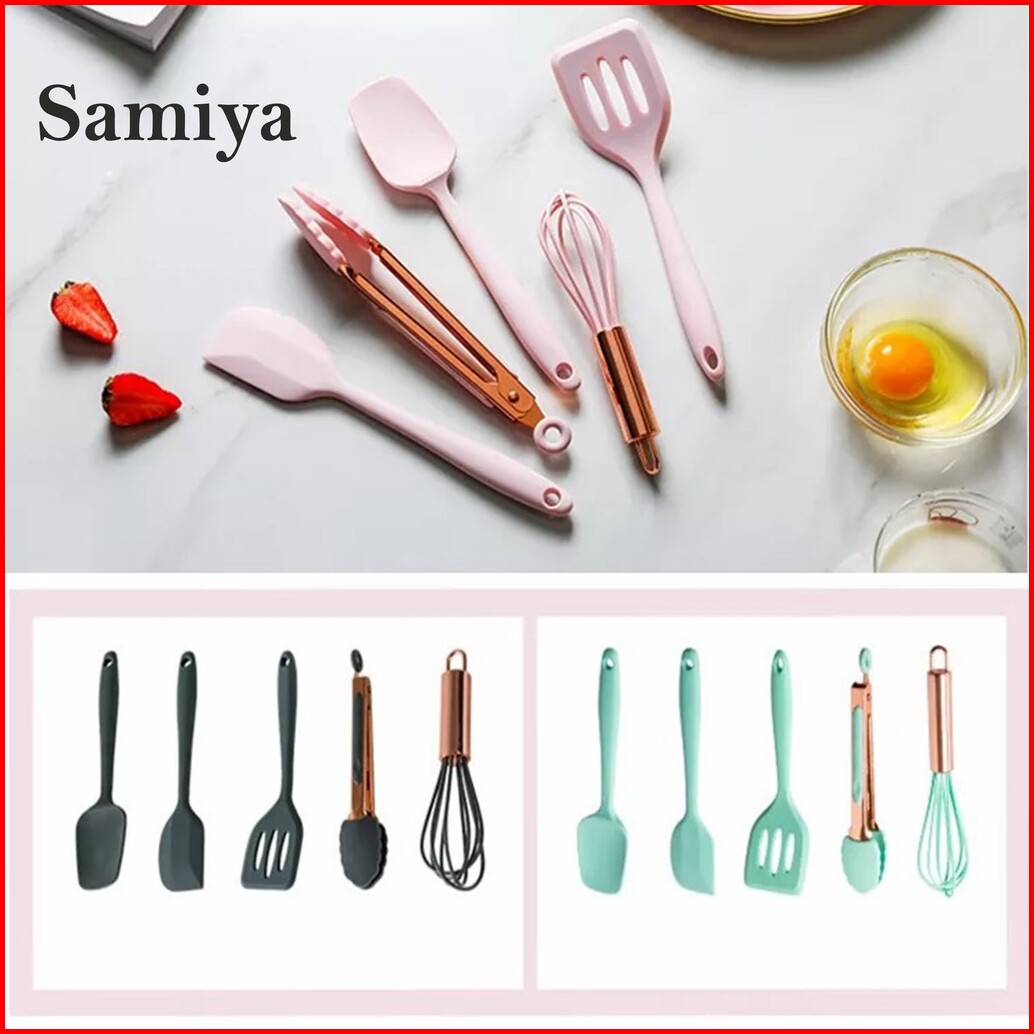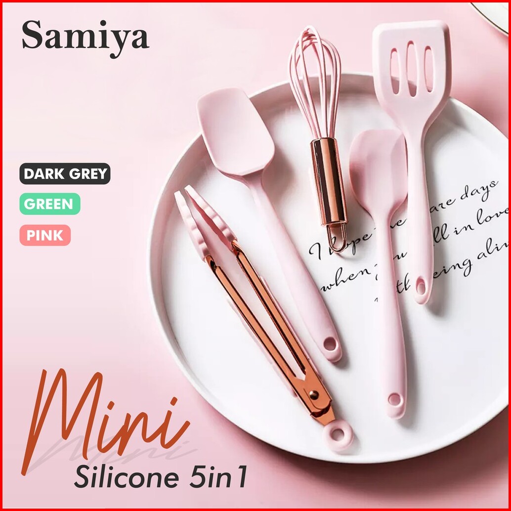Silicone Kitchen Utensils Set Mini 5in1 Alat Masak Set Spatula Egg Beater Shovel Scraper Silikon