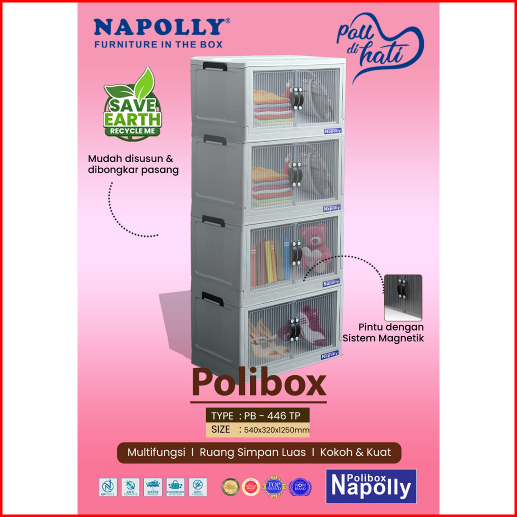 Napolly Polibox Lemari Plastik Portable Susun 1 2 3 4 5 Serbaguna