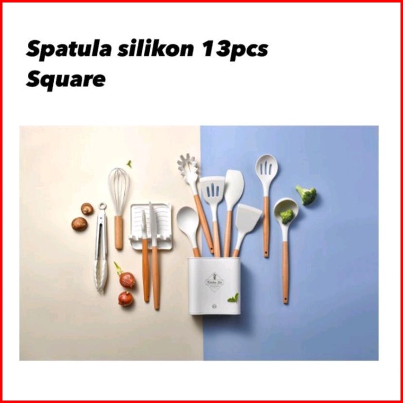 Readyyy...spatula Square Silikon Silicone Set Of 13 Pcs White Putih Alat Dapur