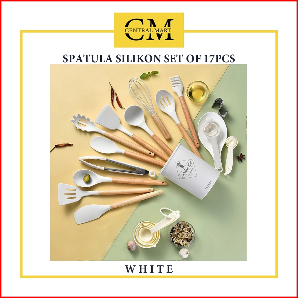 Spatula Silikon Set 17pcs Kitchen Set Spatula Wadah Bulat Kotak Sodet Alat Masak Sutil Dapur