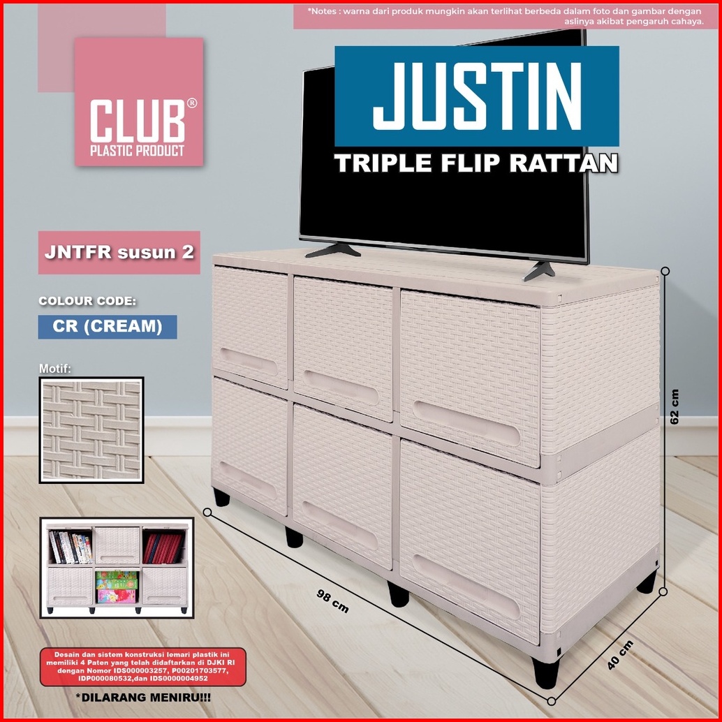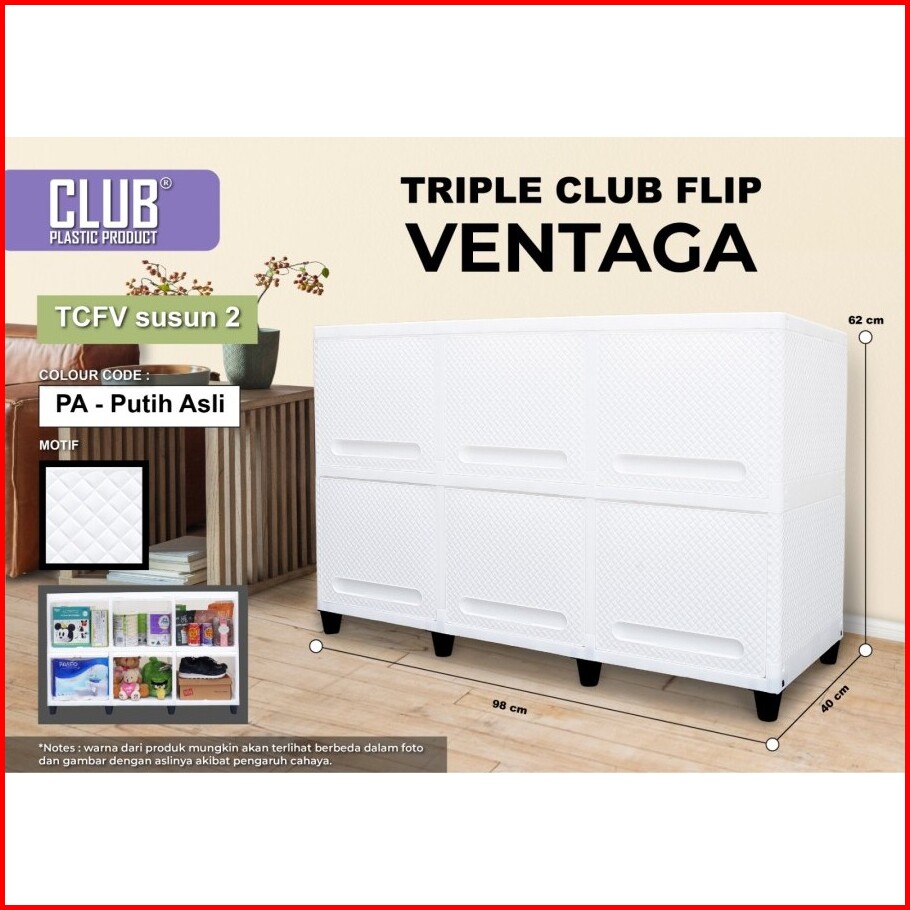 Club Lemari Pakaian Baju Plastik Serbaguna Triple Club Flip 2 Susun 6 Pintu Rak Tv Meja Tv