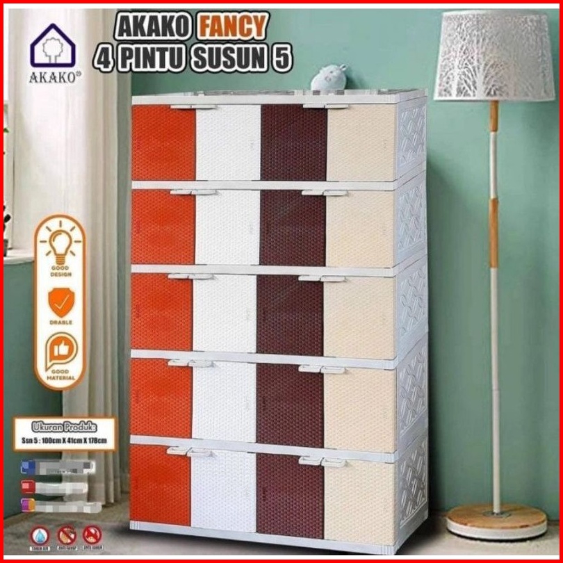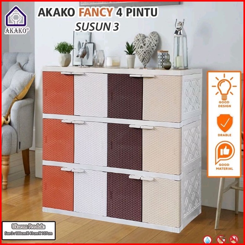 Akako - Lemari Pakaian Plastik Jumbo Akako Fancy 4 Pintu Rotan Susun 2 3 4 Dan 5