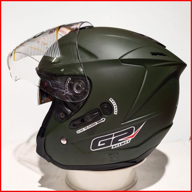 Helm Half Face G2 Optimax Solid Original Kaca Double Visor