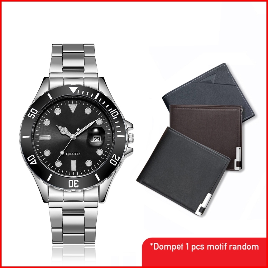 En Ligne - Jam Tangan Pria Set - Jam Tangan Gift - Jam Tangan Kado - Jam Tangan Dompet Set - Kado Ultah - Hampers