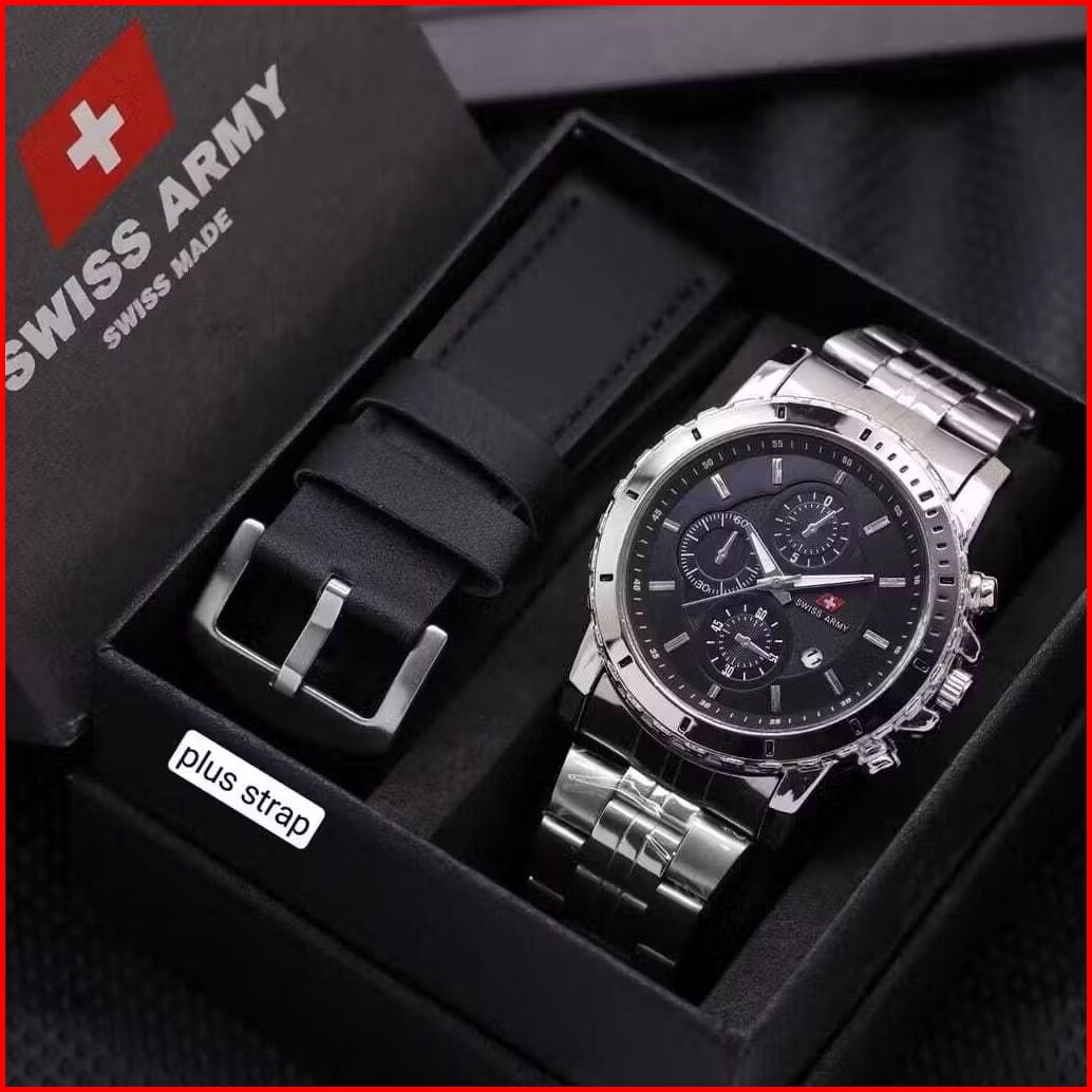 Promo Jam Tangan Pria Sw990 Army Kulit Tanggal Aktif Free Box Baterai Cadangan