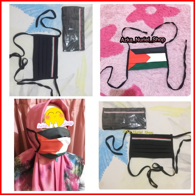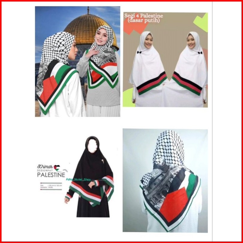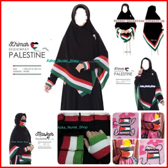 Kerudung Segi Empat Palestina 2 Sisi - Manset Rajut Palestine - Masker Hijab Premium