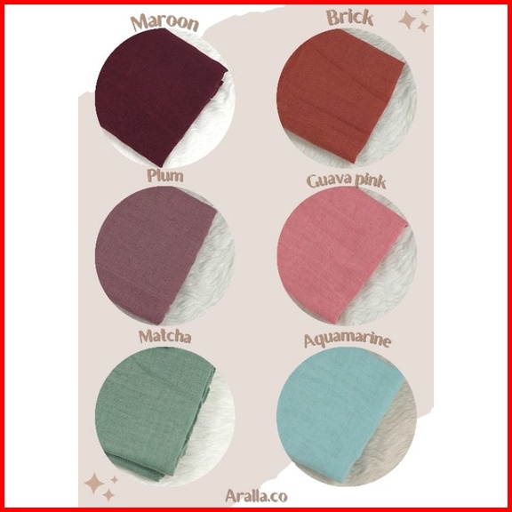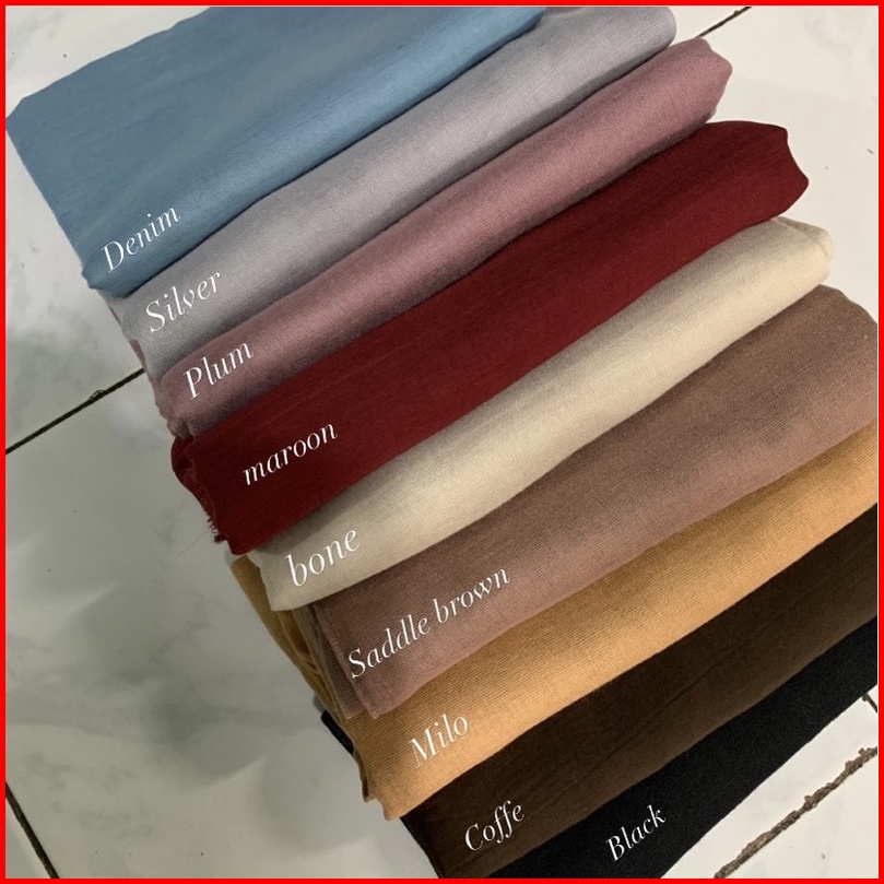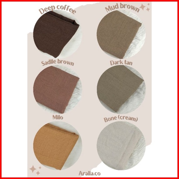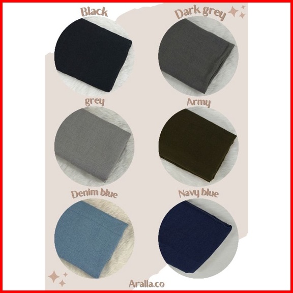 Dark grey, Grey, Hijau Tua, Navy, Milo, Maroon, Lavender, Wood, Deep Coffe, Bone(cream), Saddle brown, Denim blue, Milo rawis, Brick, dark tan, Khaki, Mud brown, Beige, Hijau botol, Hitam, Broken white, Light grey, Guava pink, Plum, Matcha, White, Aquamarine, Moss brown, Merah cabe, Army, Soft pink