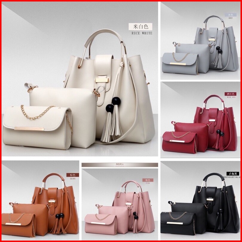 Tas Wanita 3039 - Tas Paket Wanita 3 In 1 Handbag Wanita Murah Batam - B