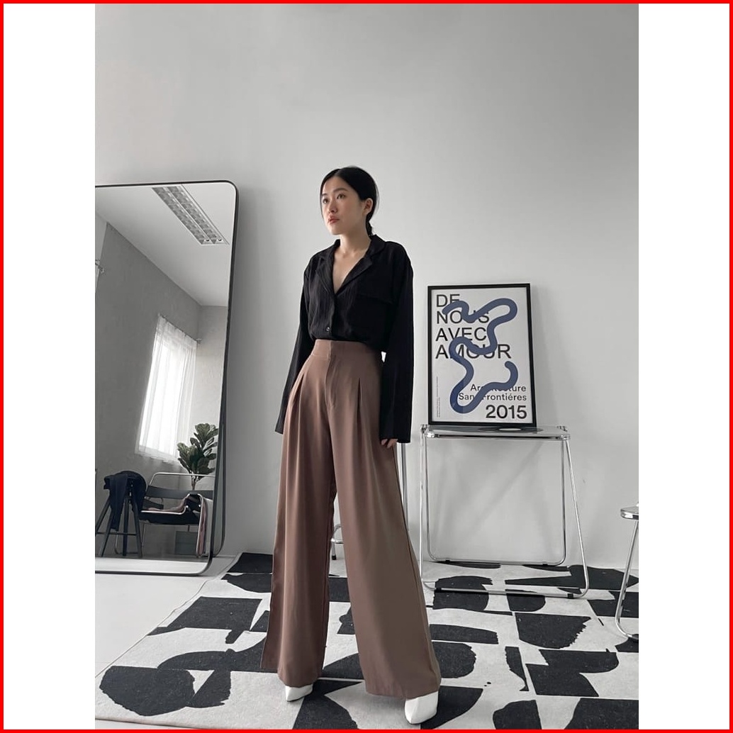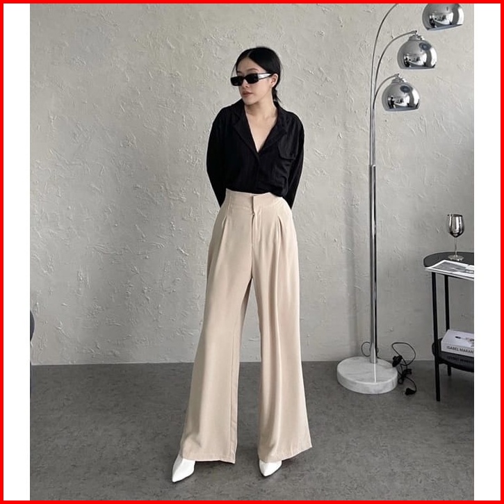 Vallina - Loose Pants Highwaist Cullote Premium Bawahan Celana Kulot Palazo Basic Kerja Kantor Wanita Korean Style