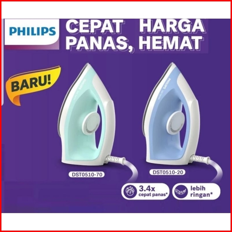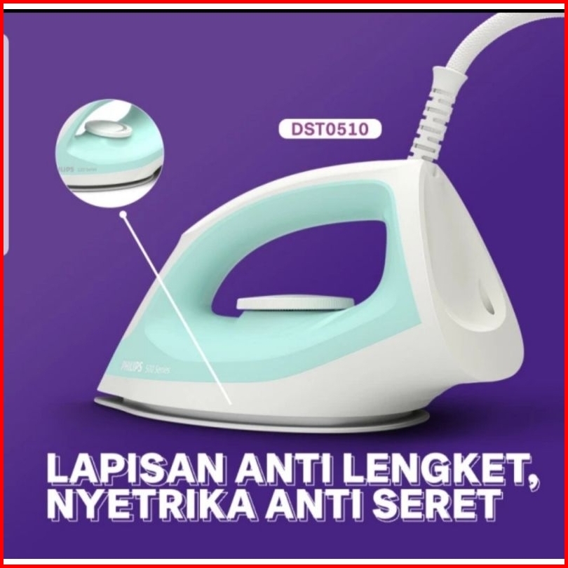 Philips Dst0510 Gosokan Setrika Kering Phillips Dry Iron Dst 0510 Anti Lengket 350 Watt