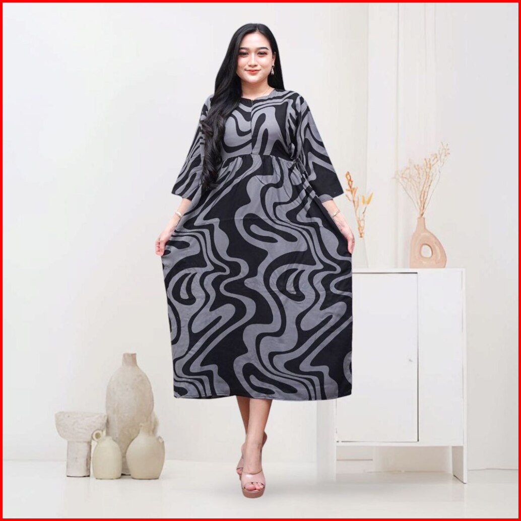 Prass - Daster Rempel Busui Tali Serut Rayon Grade A Dres Maura Susun Batik Cap Lengan 3 4