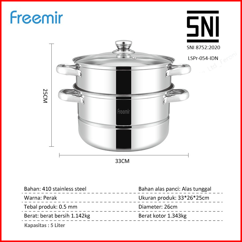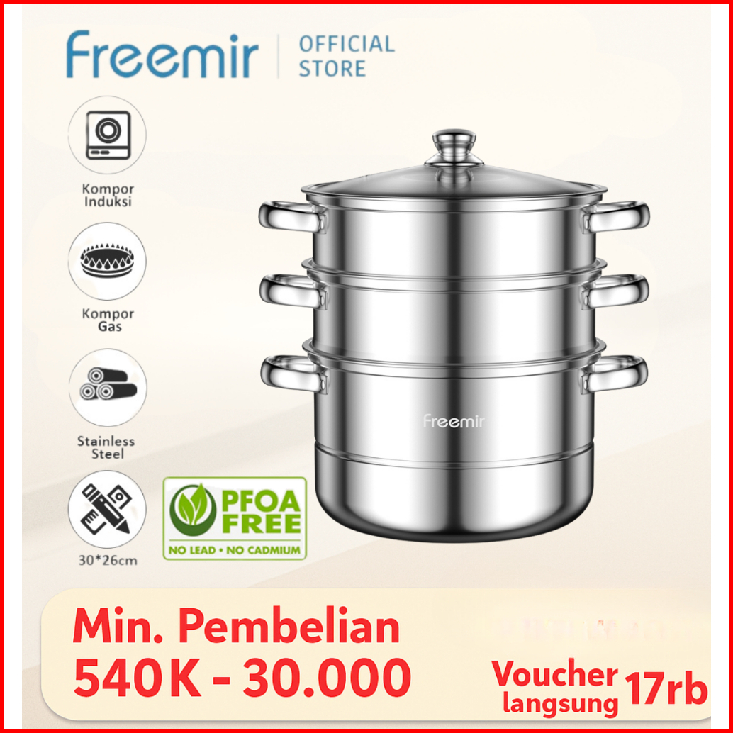 Best Seller Freemir Panci Stainless Steel 2 3 Susun Dan Tutup Panci Kukus Panci Steamer Kapasitas Besar 33cm Sni Garansi
