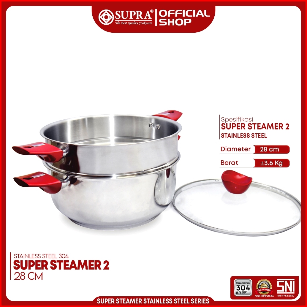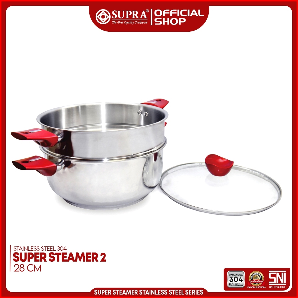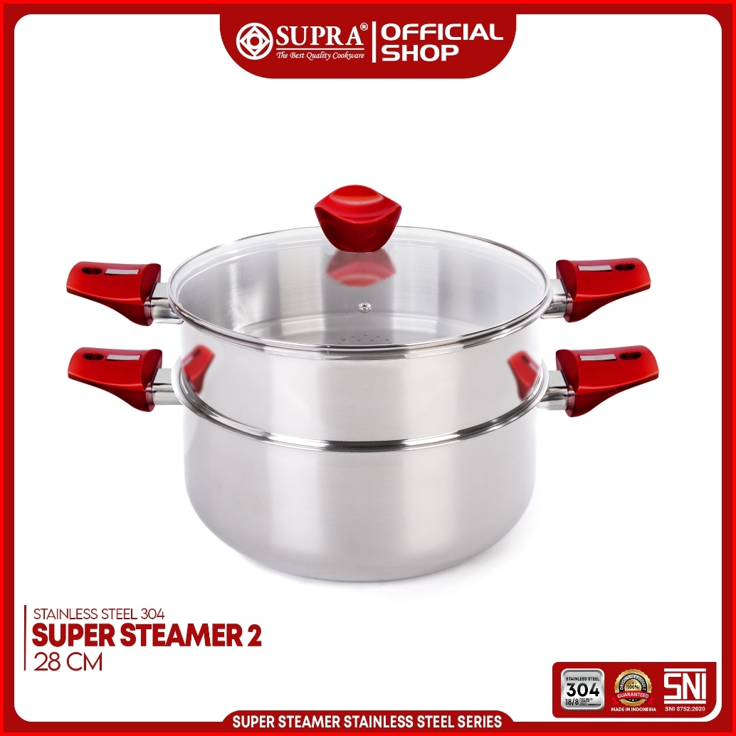 Supra Panci Stainless Super Steamer Susun 2 28 Cm - Red