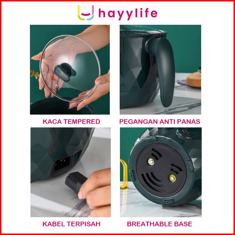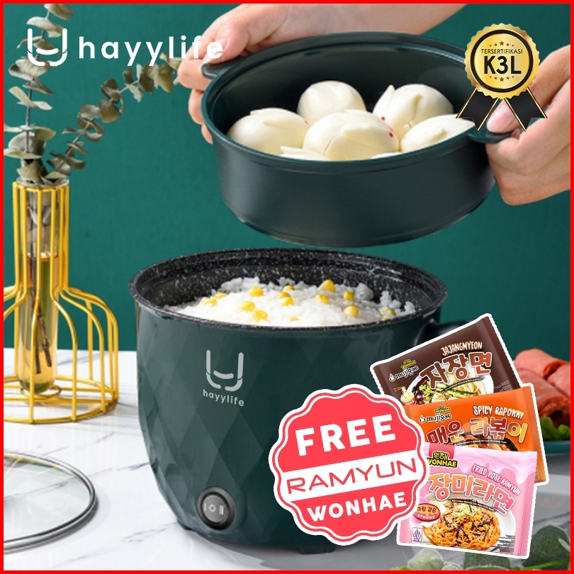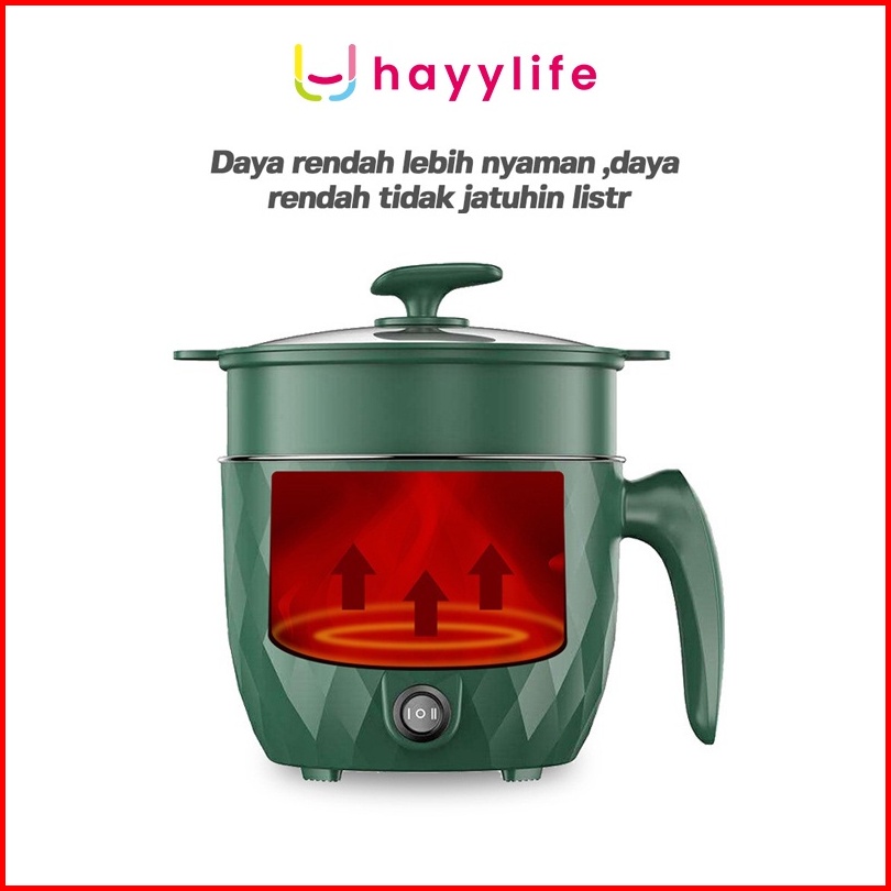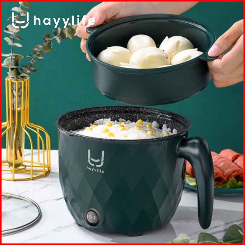 Hayylife Free 1pcs Noodles Panci Listrik Serbaguna Dengan Steamer Multifungsi 1200 Ml Lapisan Keramik 18 Cm Hl-daa521