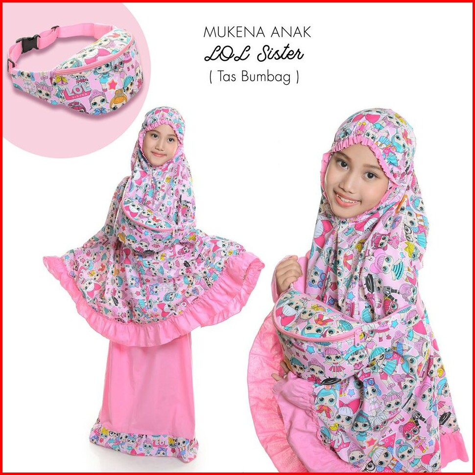 Pusat Mukena Indonesia - Mukena Anak Lola Sister Tas Bumbag