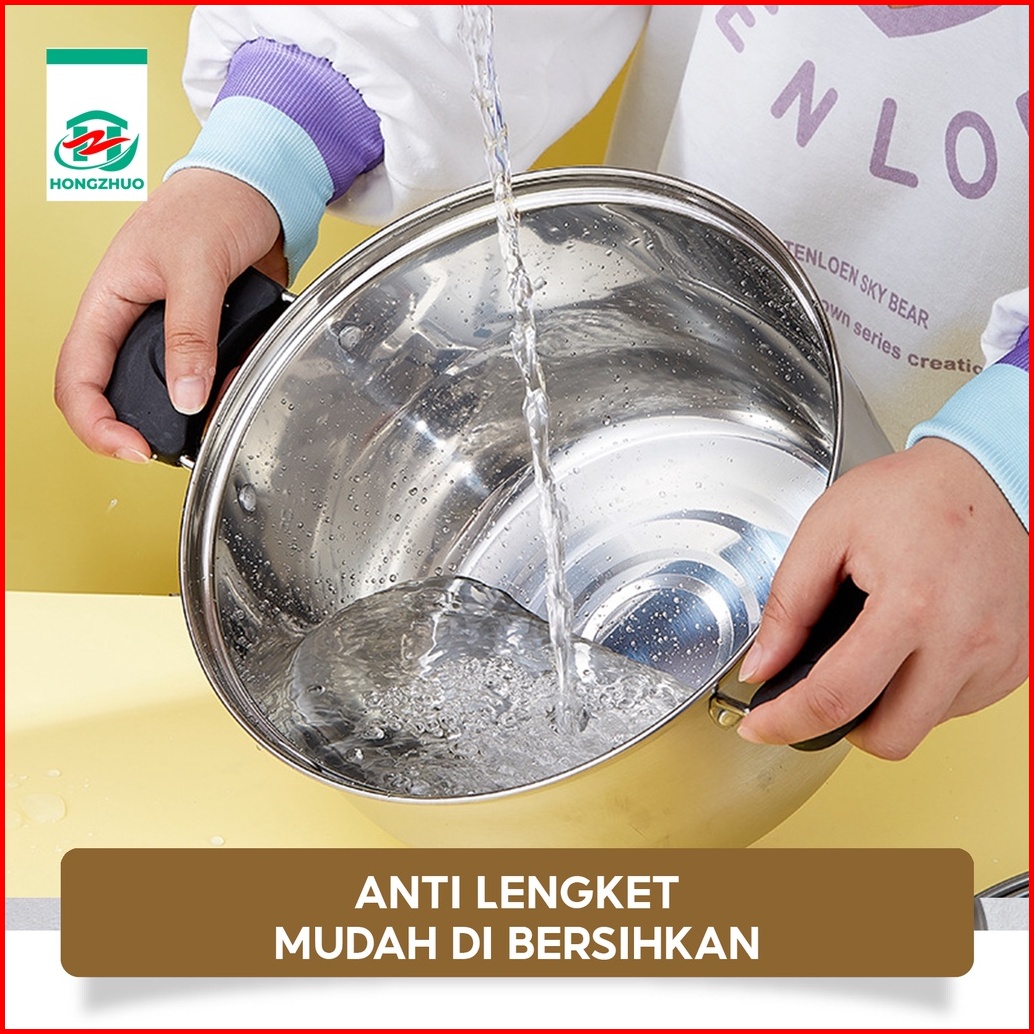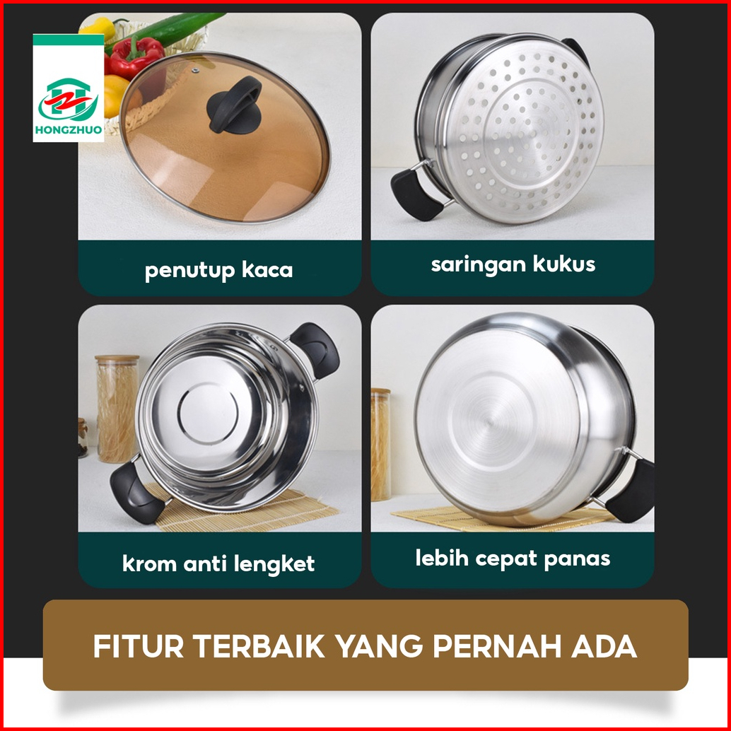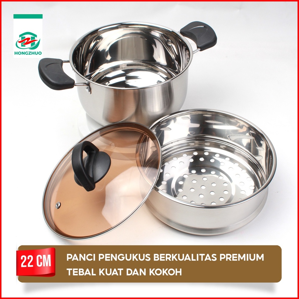 Hongzhuo Panci Kukus Steam Pot 2 Tingkat Full Stainless Steel 22cm Tutup Kaca