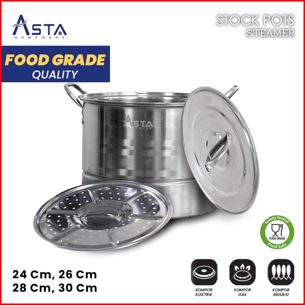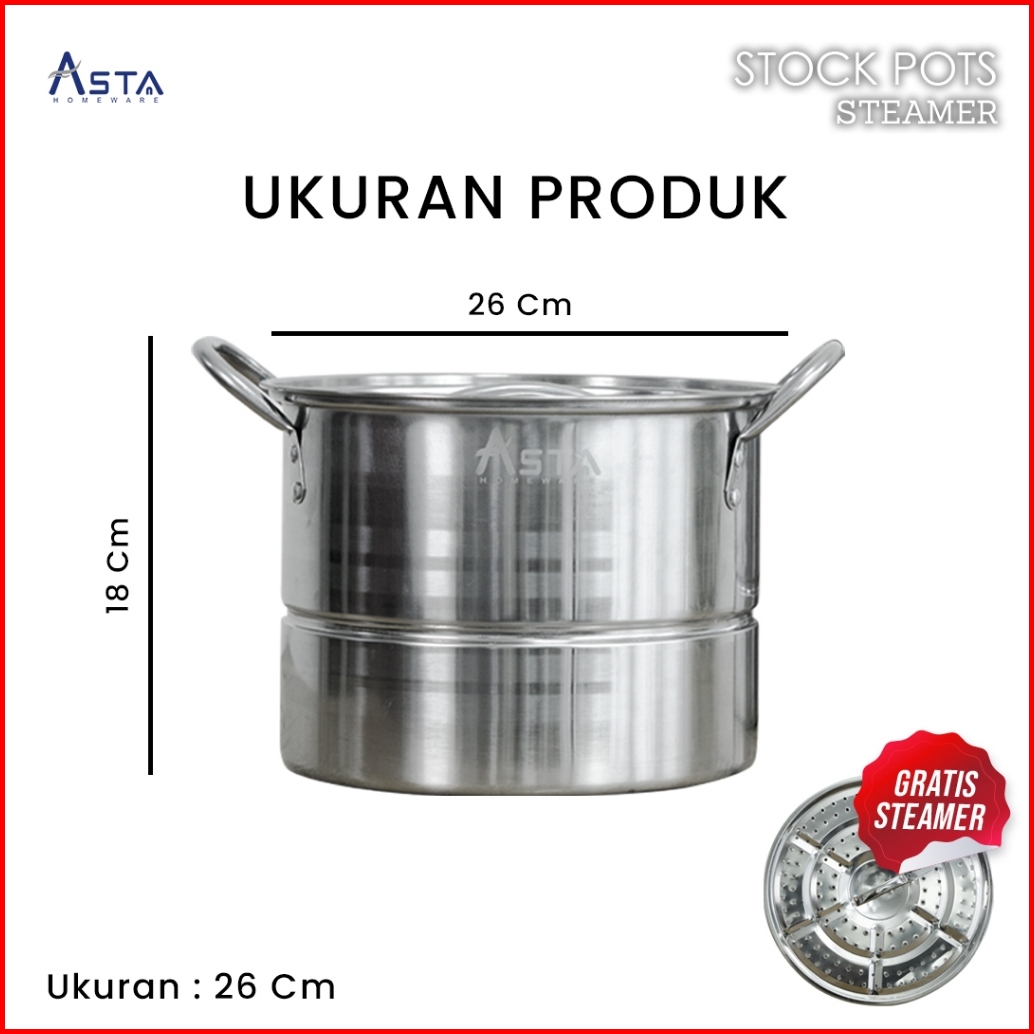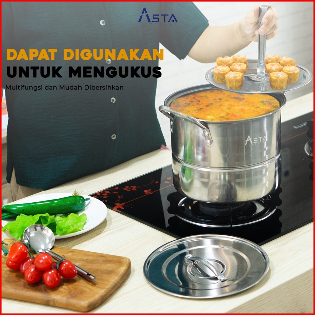 Asta Panci Dandang Kukus Stainless Steel Stock Pot Steamer Dandang Bakso Nasi Tebal