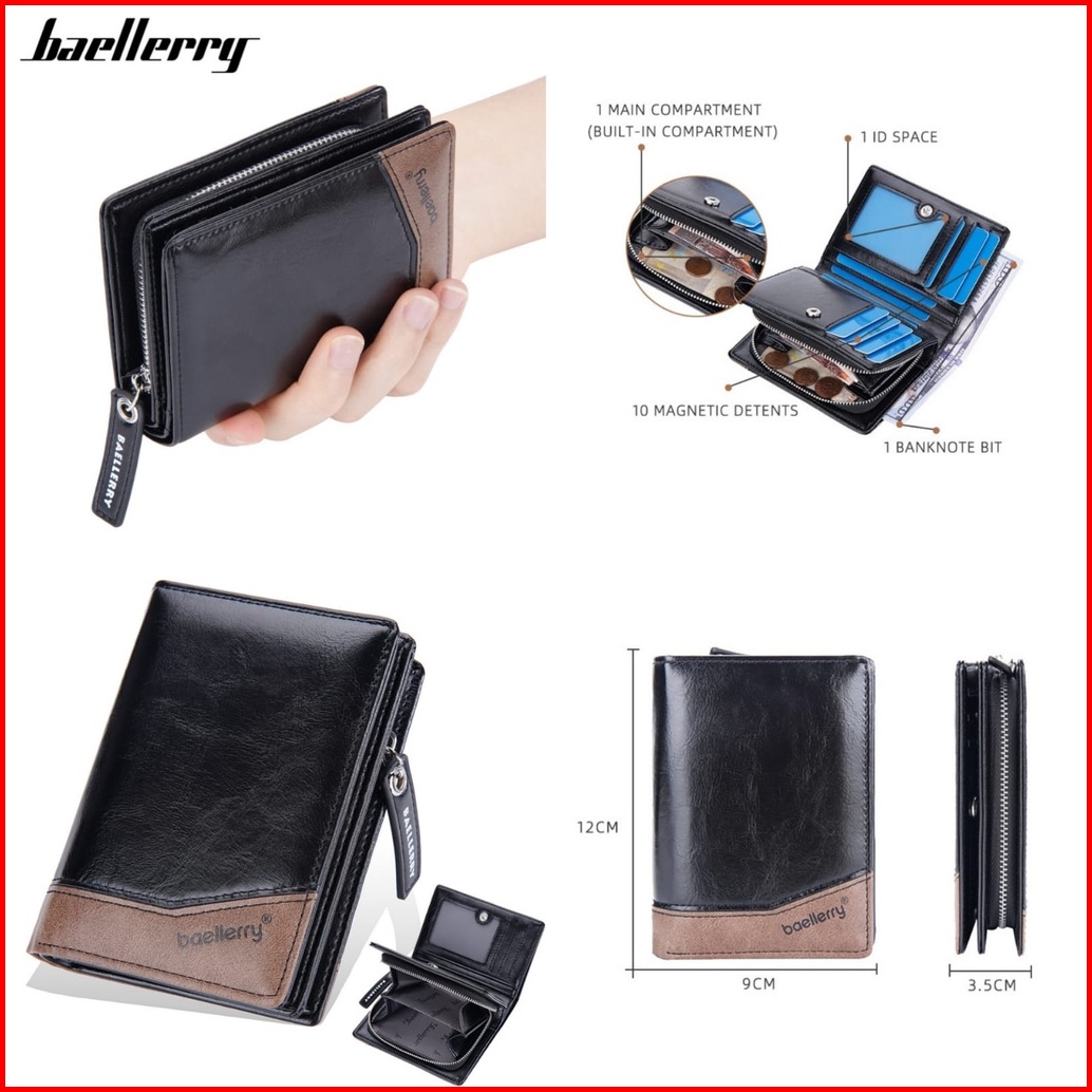 Dompet Lipat Wanita Baellerry Kartu Resleting Kulit Hitam Original Branded Wa631b5 Drasko Korea Uang Koin Fashion Remaja