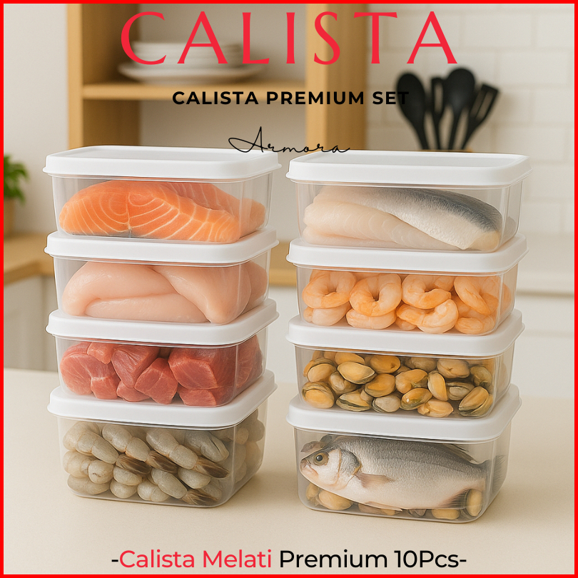 Calista Toples Plastik Calista Melati Set Isi 10pcs Food Container Prep Kulkas Set Tempat Penyimpanan Makanan Buah Sayur