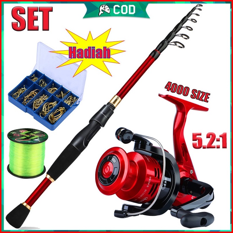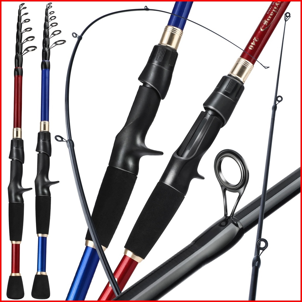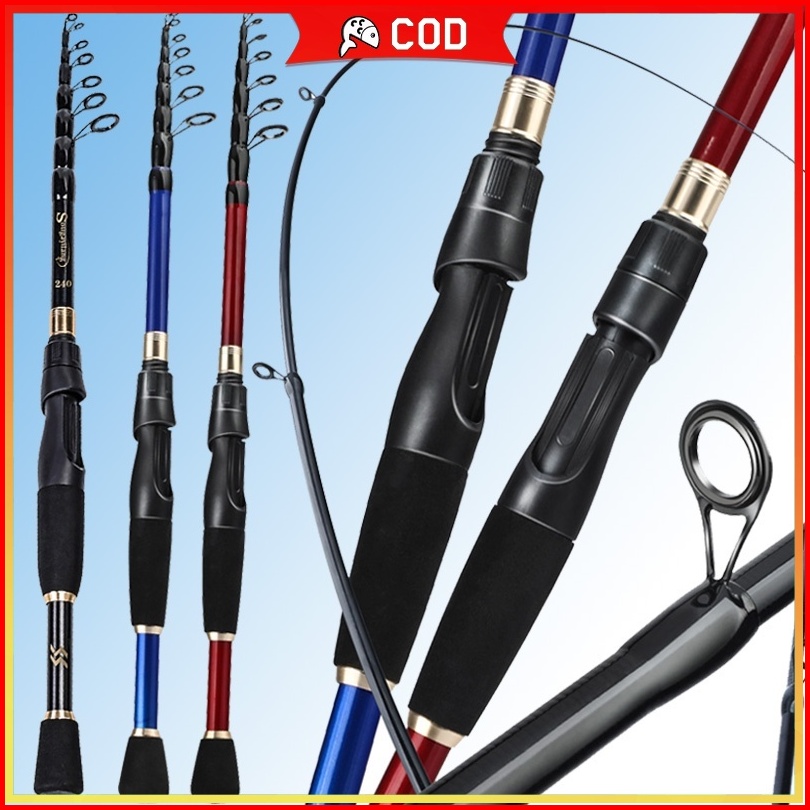 Sougayilang Set Pancing Portabel 1 8 M-2.4m Joran Pancing Tongkat Pancing Teleskopik Trout Serat Karbon Dan Gulungan Mem
