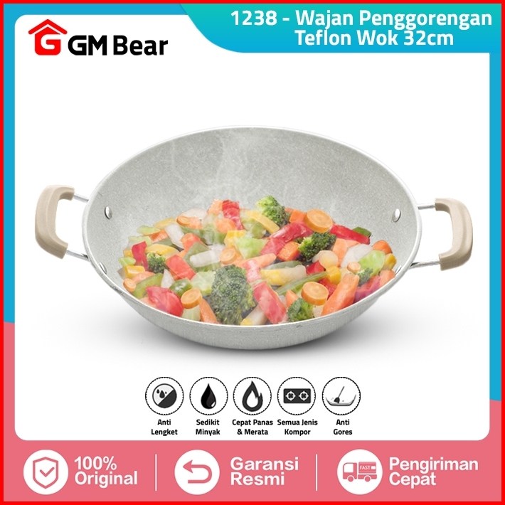 Gm Bear Wajan Penggorengan 32cm 1238 - Kuali Wok Pan