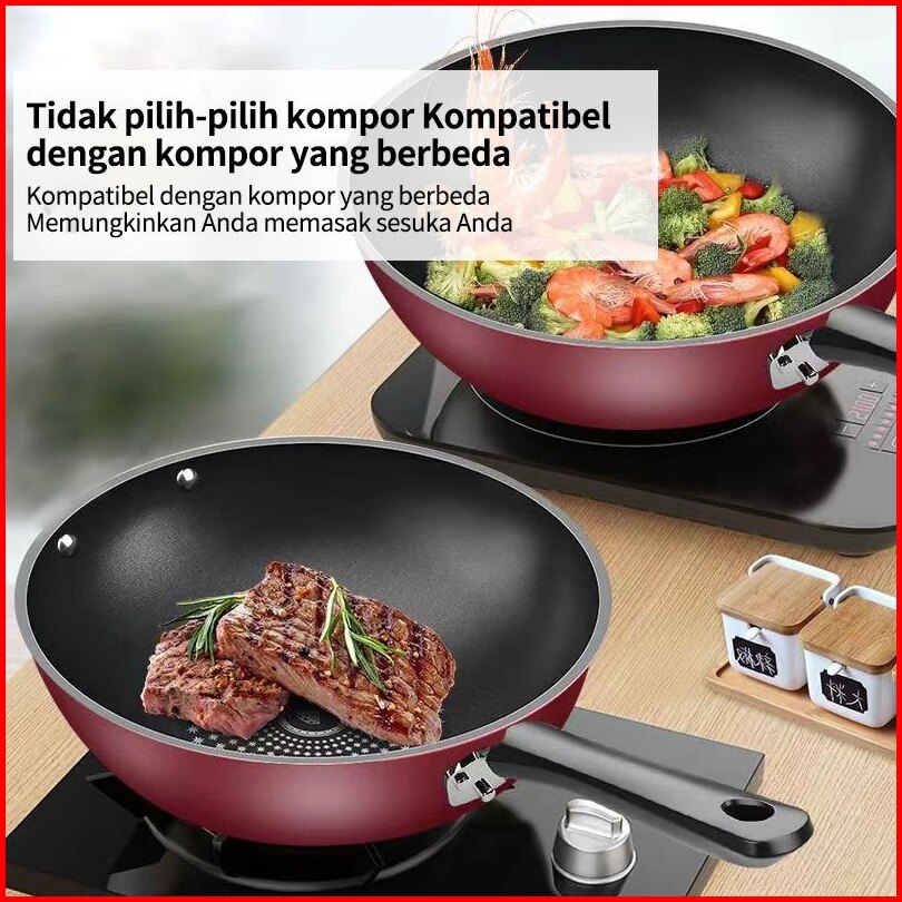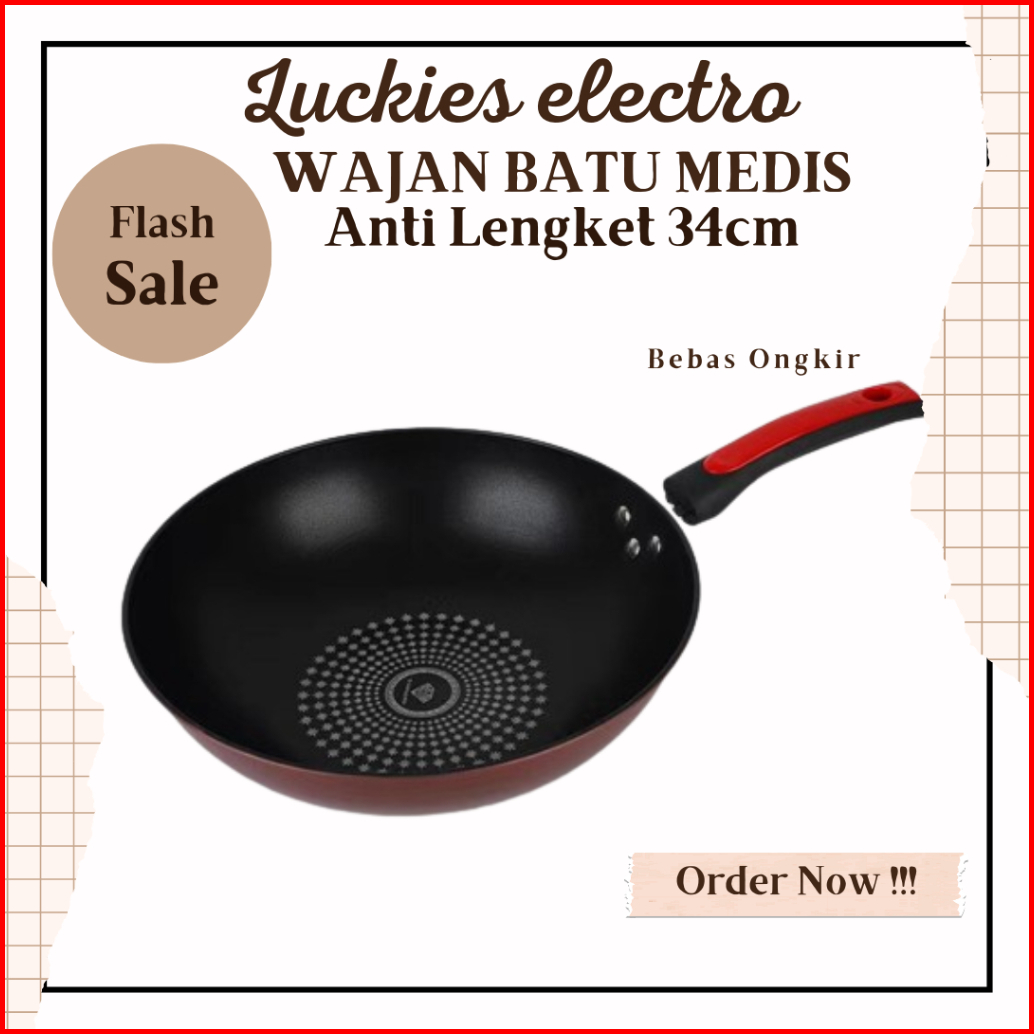 Wajan Penggorengan Anti Lengket Batu Medis Ukuran 34 Cm Serbaguna Multifungsi Premium