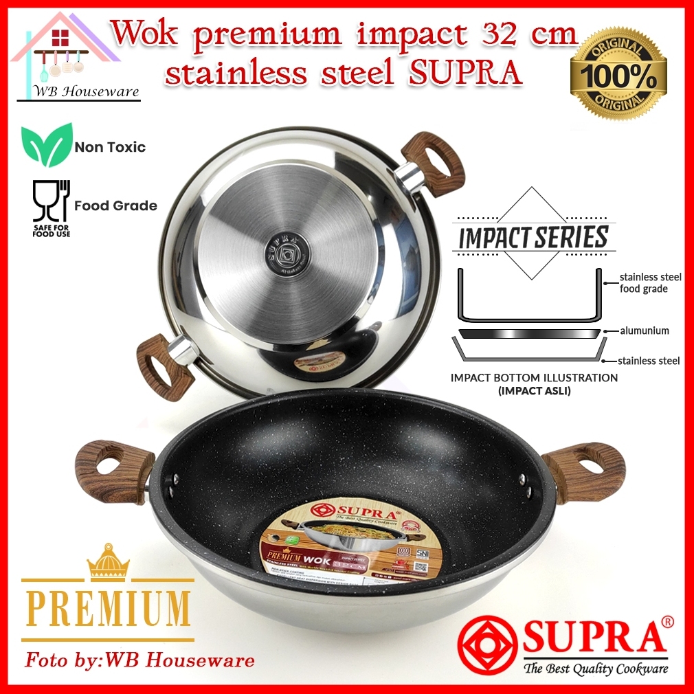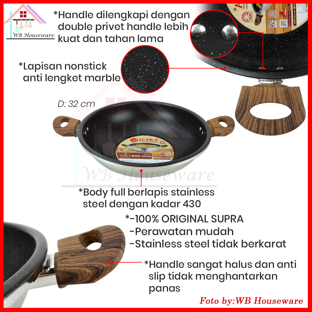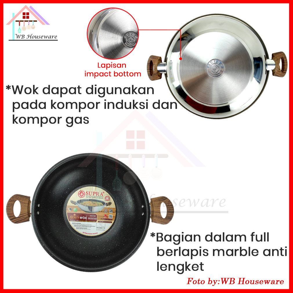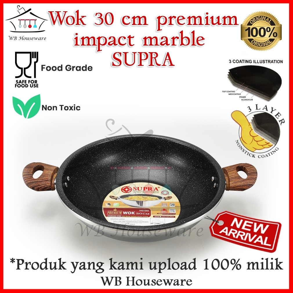 Supra Wok Impact Premium 32cm Marble Coating Wajan Masak Anti Lengket Kuali Marble Tebal