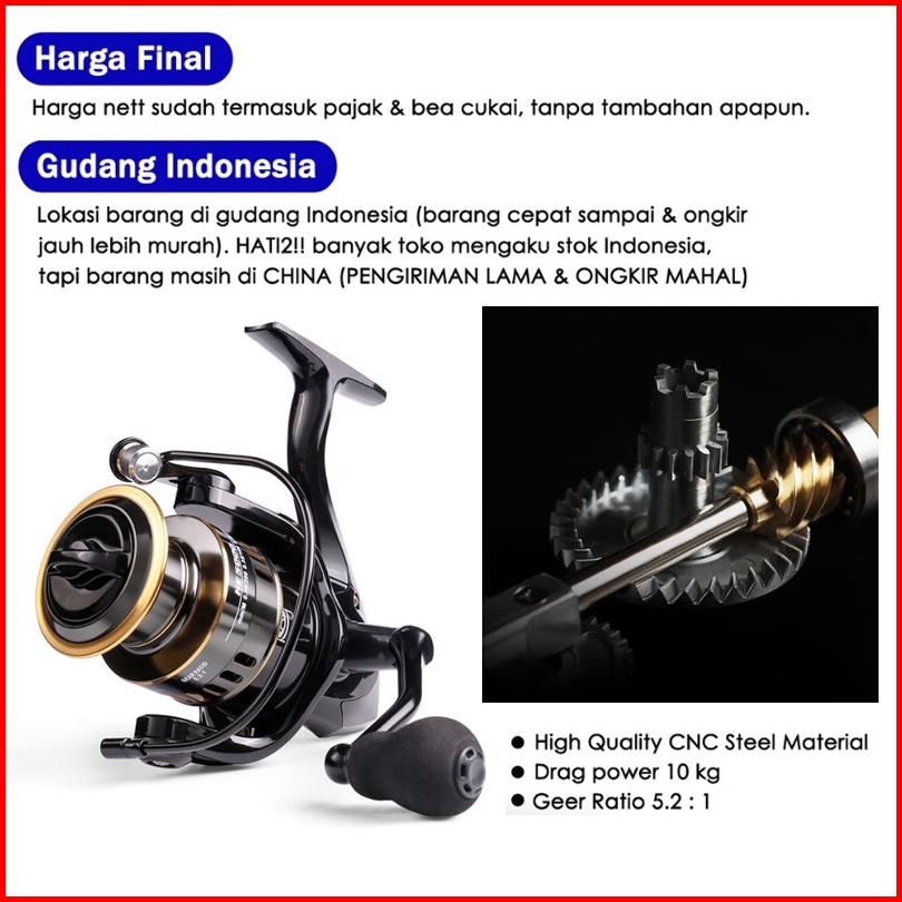 1000 Sampai 7000 Reel Pancing Asli Besi Fishing Reel 10kg Drag 5.2 1 Kincir Logam Berkekuatan Tinggi