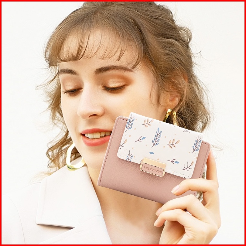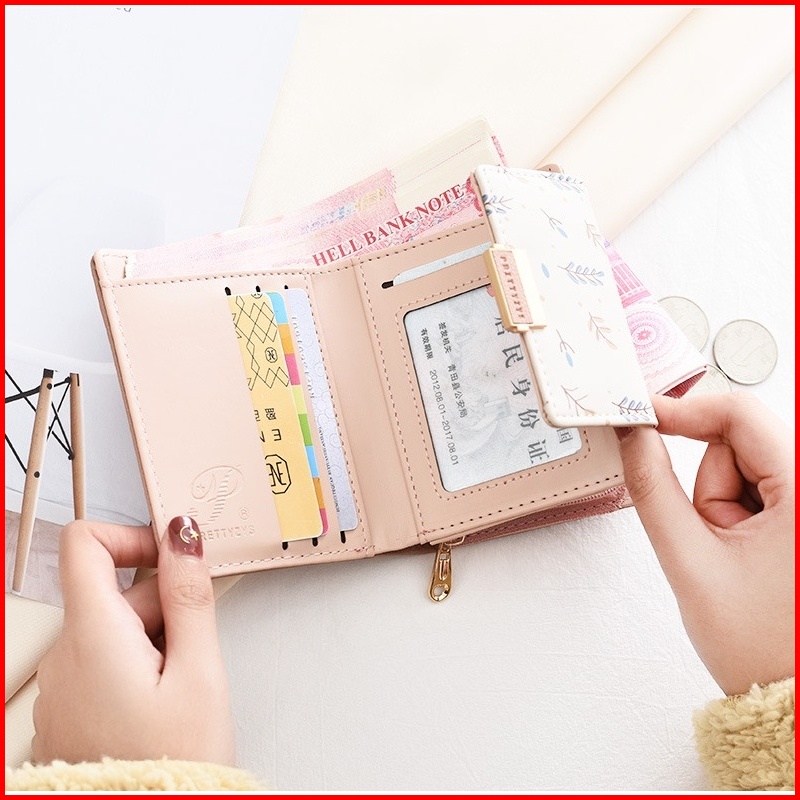 Dompet Lipat Wanita Prettyzys Ori Kulit Pink Ponami Wa513p3 Korea Lucu Kecil Premium Slot Kartu Uang Resleting Koin Fash