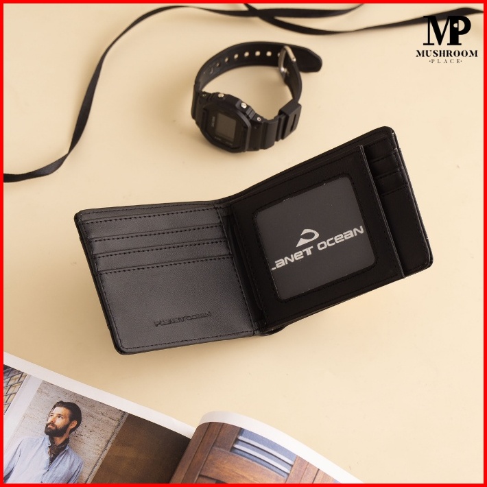 Dompet Lipat Polos Pria Planet Ocean Hitam Original - Po03