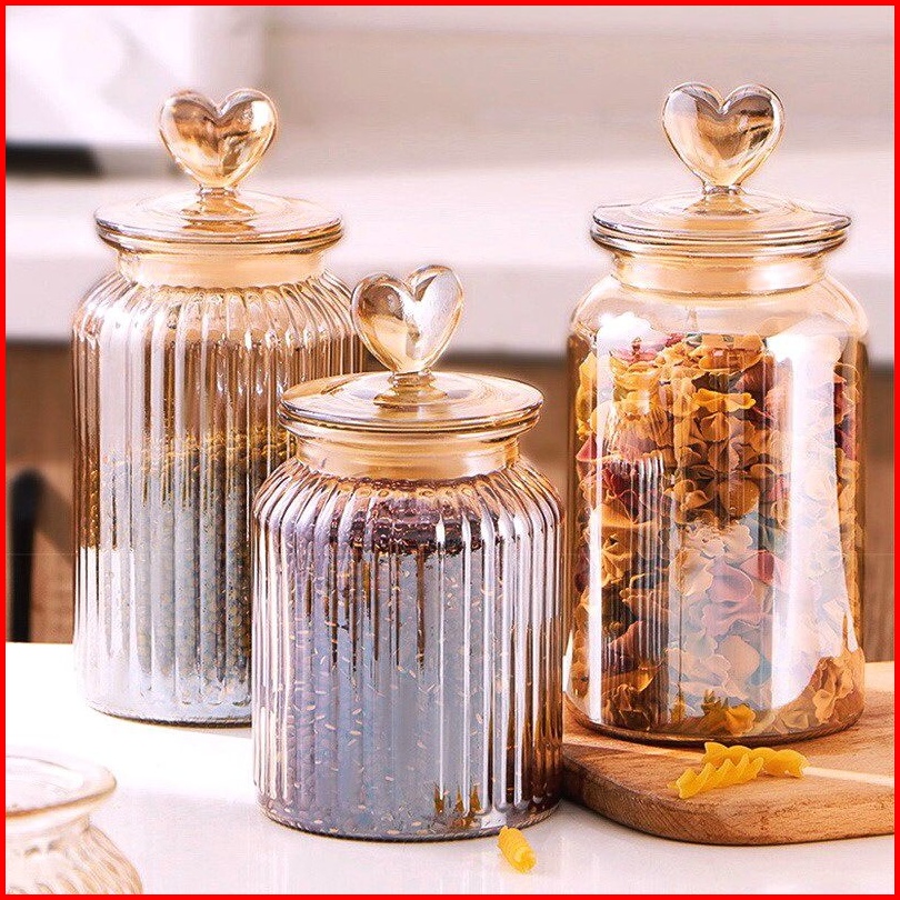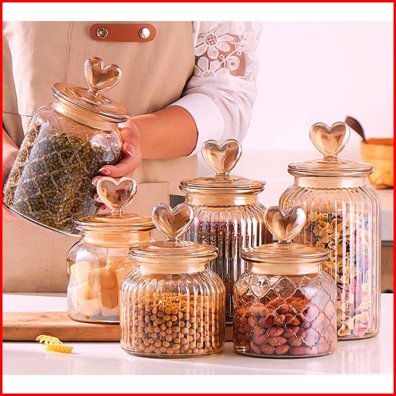 Ms Toples Kaca Kedap Udara Satuan Toples Kue Lebaran Love Candy Jar