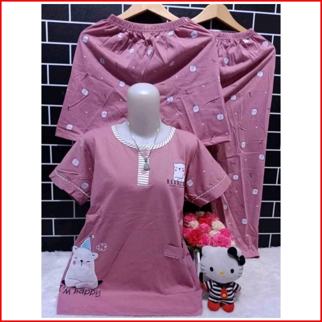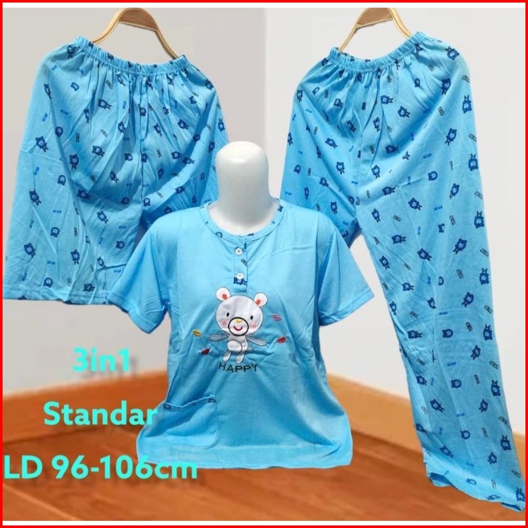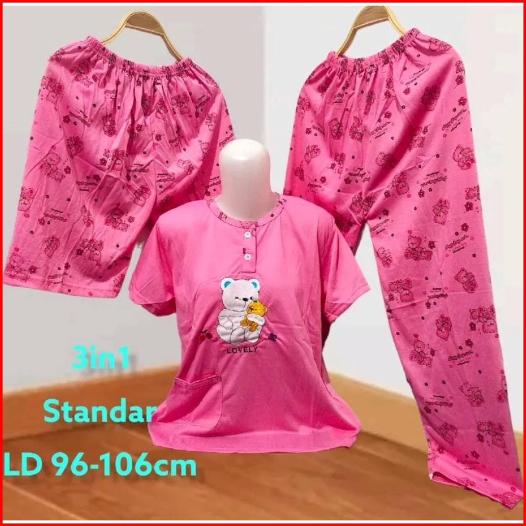 Setelan Baju Tidur 3 In 1 Wanita Dewasa Model Bordir Baju 1 Celana 2 Panjang Dan Pendek