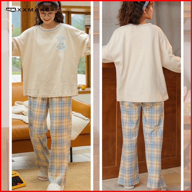 Xxmake Piyama Dewasa Set Piyama Wanita Lengan Panjang Celana Panjang Pajamas Baju Tidur