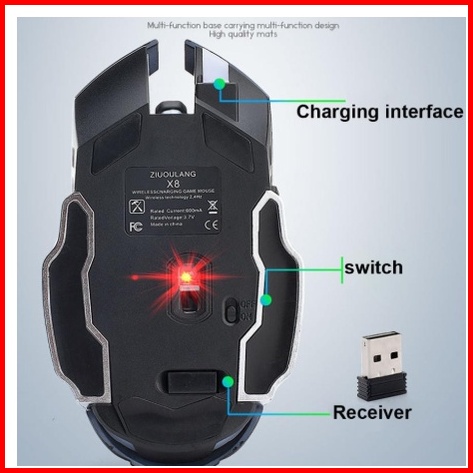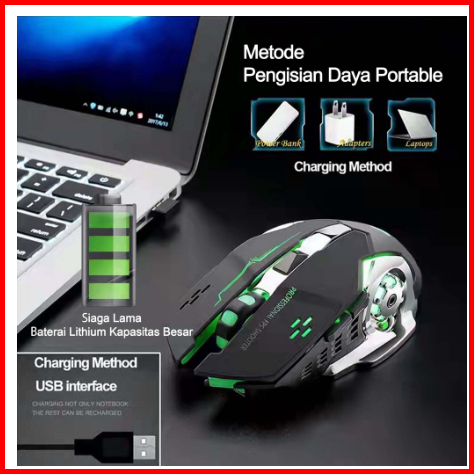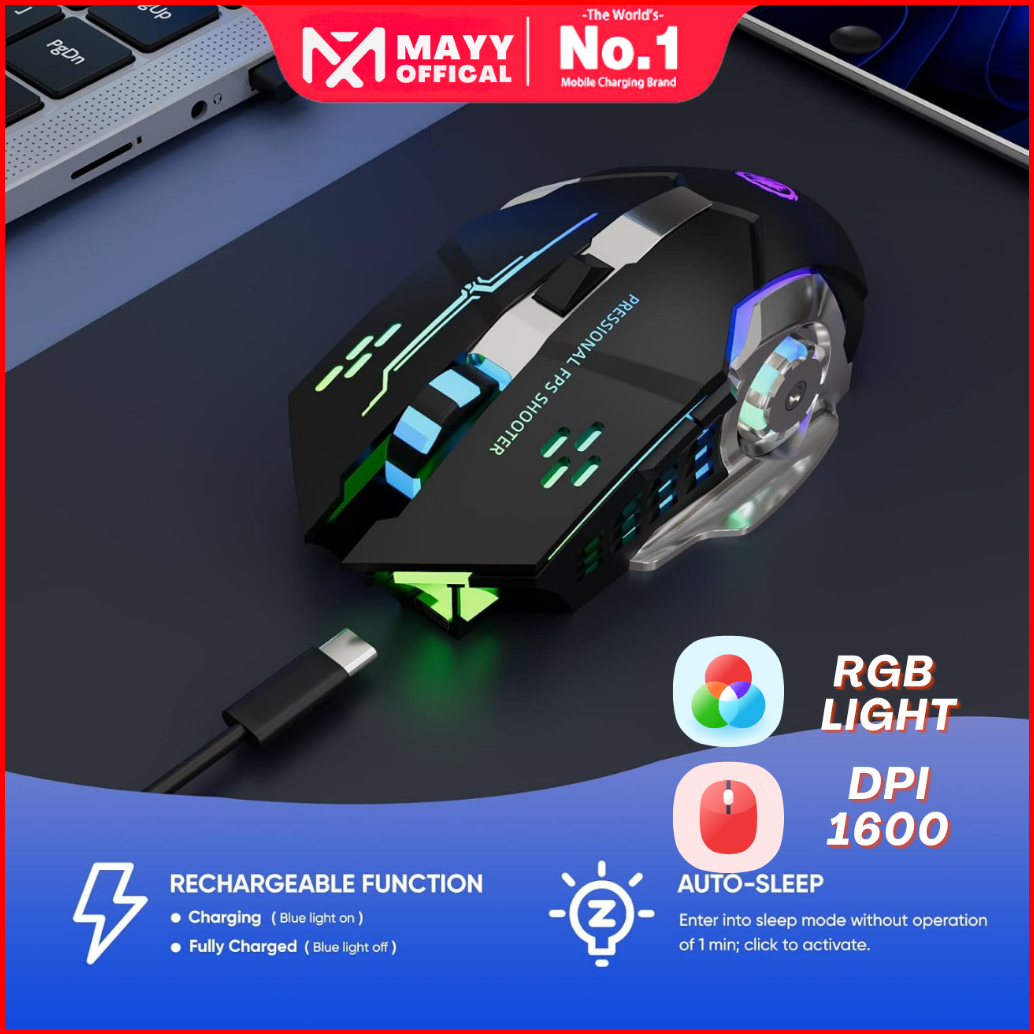 Mayy Id X8 Mouse Wireless Rechargeable Gaming Silent Click Rgb Led Dengan Receiver-usb 2.4g 1600dpi Grey Wireless Mouse