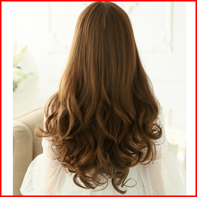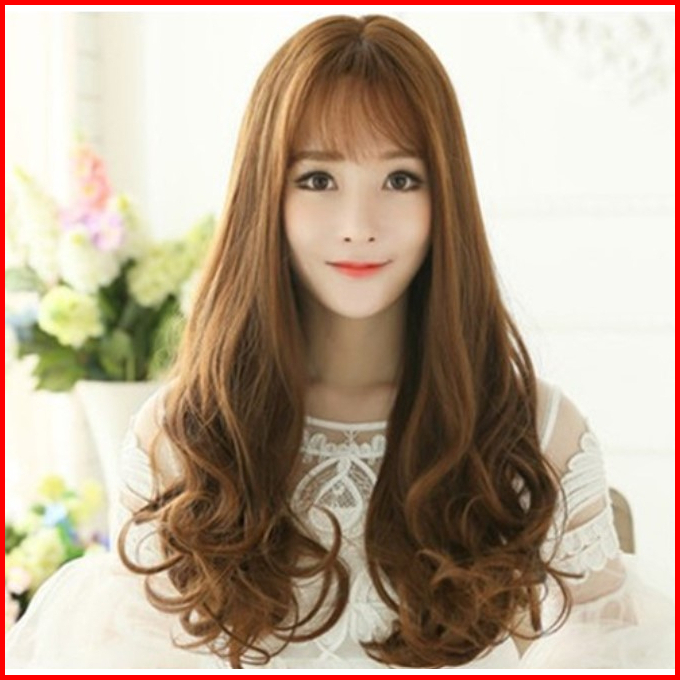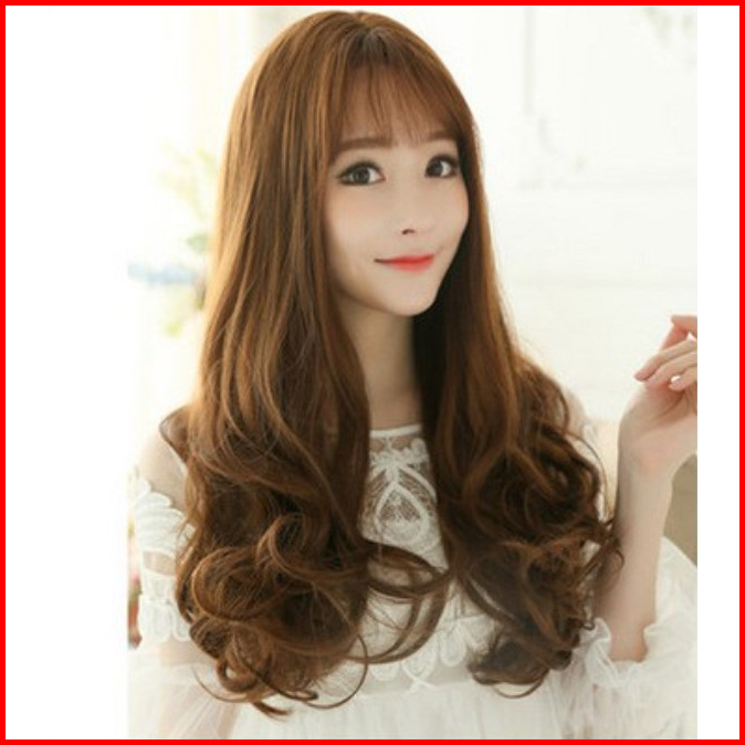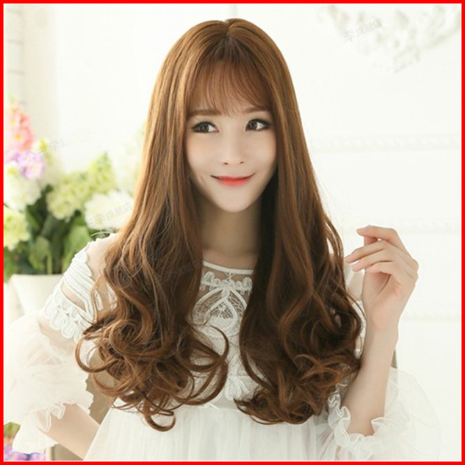 Wig Rambut Palsu Wanita Long Curly Bergelombang Poni Panjang Murah
