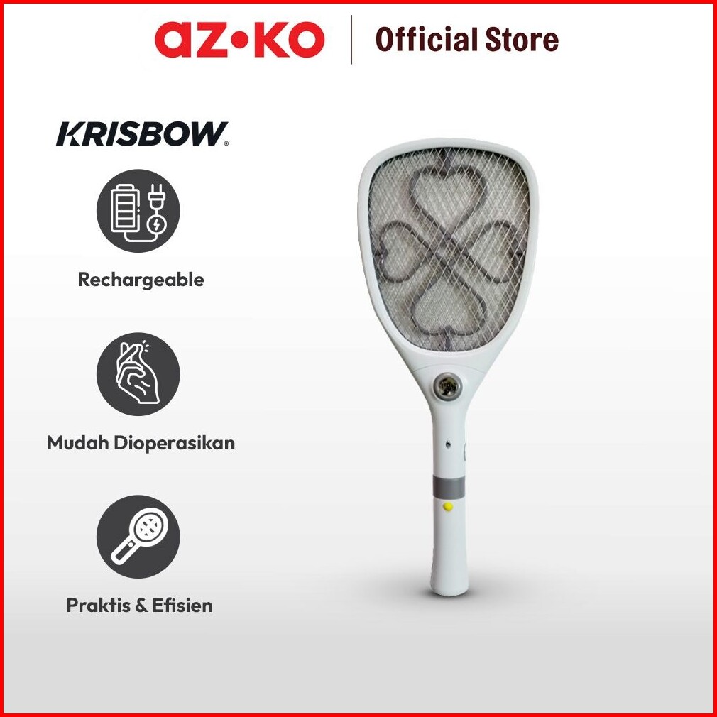 Azko Krisbow Raket Nyamuk Rechargeable Dengan Soket Bug Zapper Mosquito Killer Mosquito Racket Swatter Nyamuk Listrik