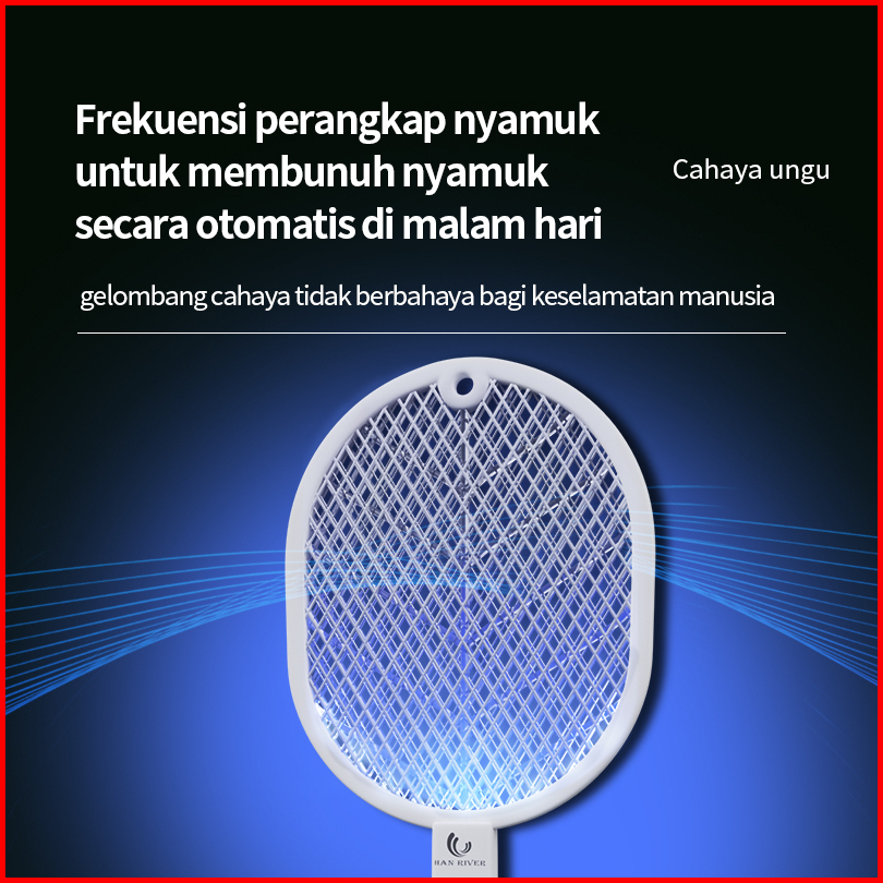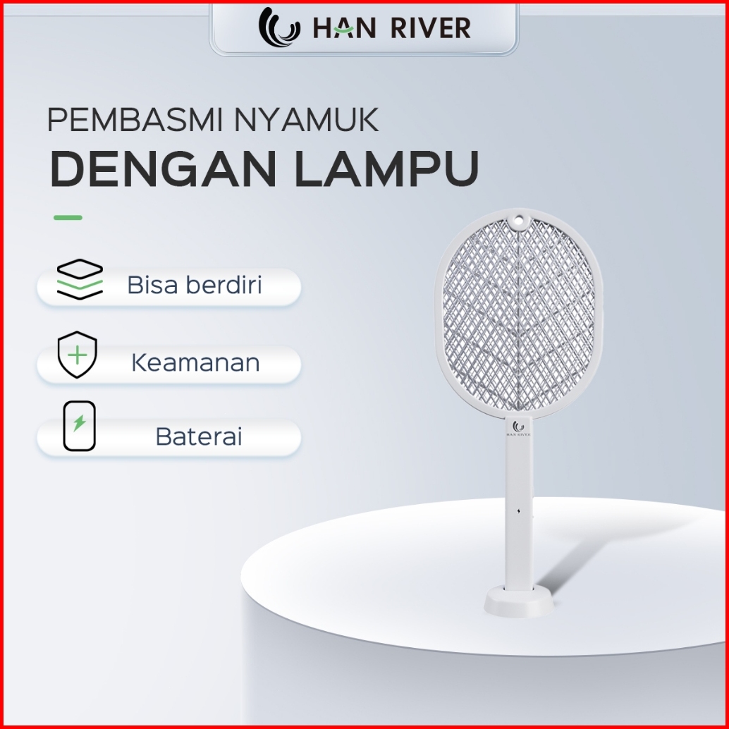 Han River Raket Nyamuk 2 In 1 Mosquito Killer Hrdwp01wt Putih Dengan Basis
