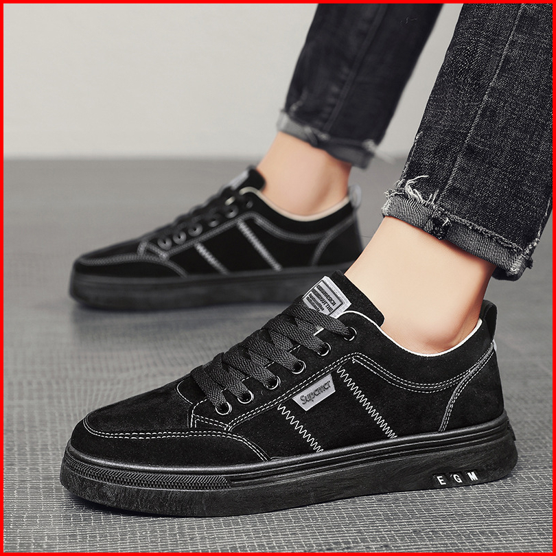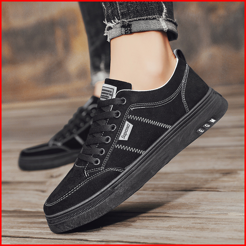 Highland Sepatu Sneakers Hitam Sepatu Cowok Keren Sekolah Sepatu Pria Casual Trendy Sepatu Sport Fashion Mc414