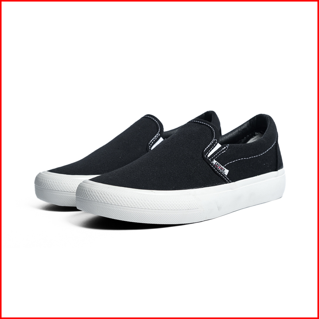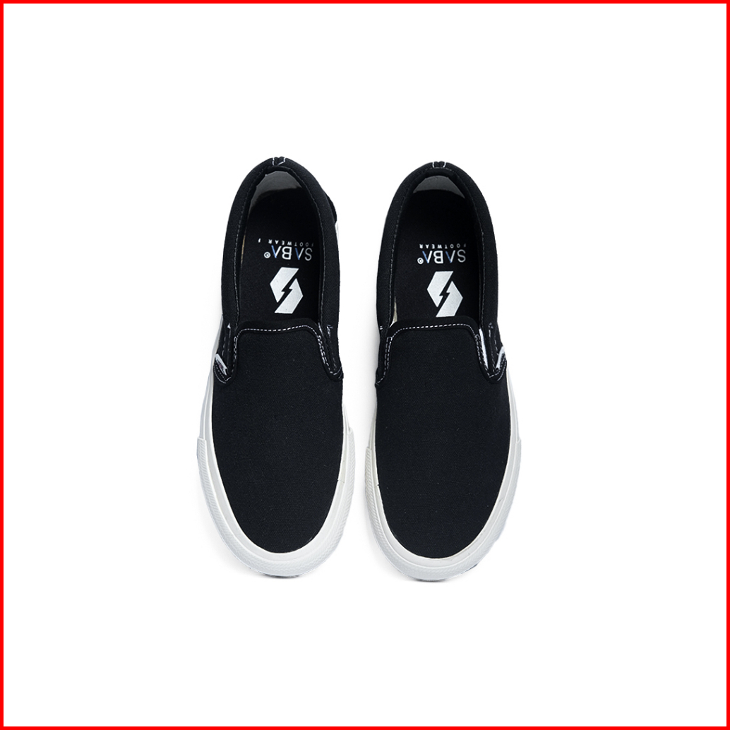 Saba Vintage Slip On Black White - Sepatu Sneakers Casual Pria Wanita Original 100 Vtg 01