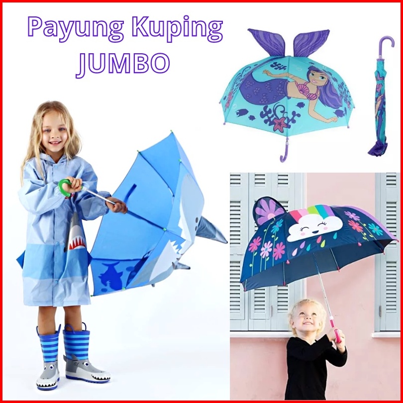 Payung Anak Kuping Tanduk Telinga Karakter Jumbo Besar Motif Karakter Kartun Animal Disney Princess Hello Kitty