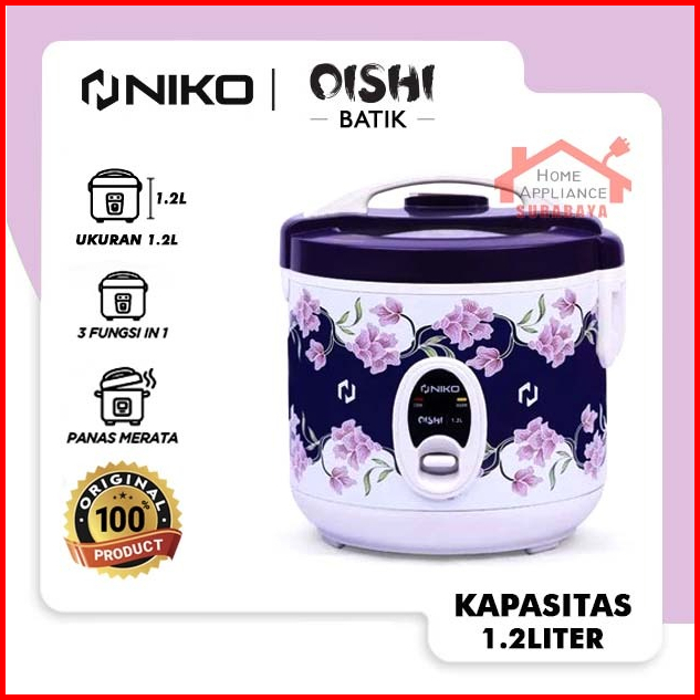 Niko Rice Cooker - Magic Com 3 In 1 Oishi 1.2 Liter Tutup Kaca Amazon - Batik - Landmark Penanak Nasi