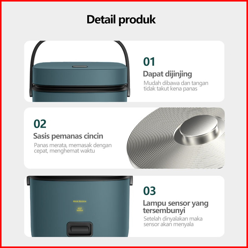 Penanak Nasi Cerdas Multifungsi Penanak Nasi Mini Portabel 0.8l Portable Travel Version Student Version Green Whtie