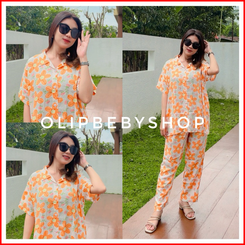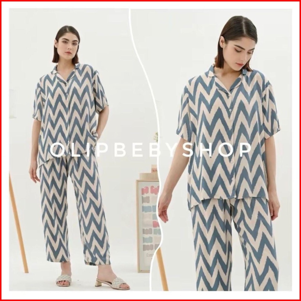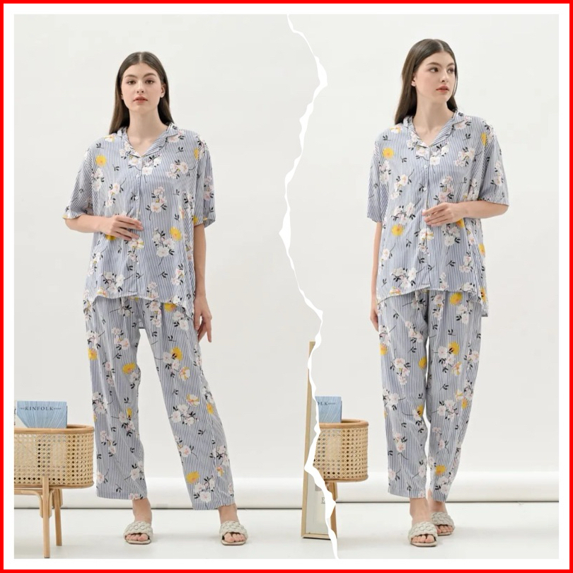 Sheila One Set Pajamas Set Piyama One Set Kemeja Set Celana Panjang Lengan Pendek Full Kancing