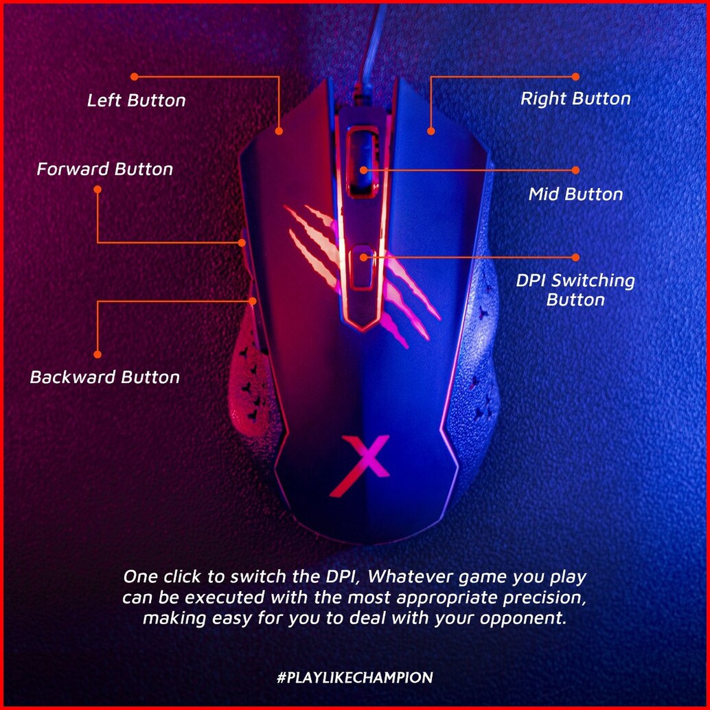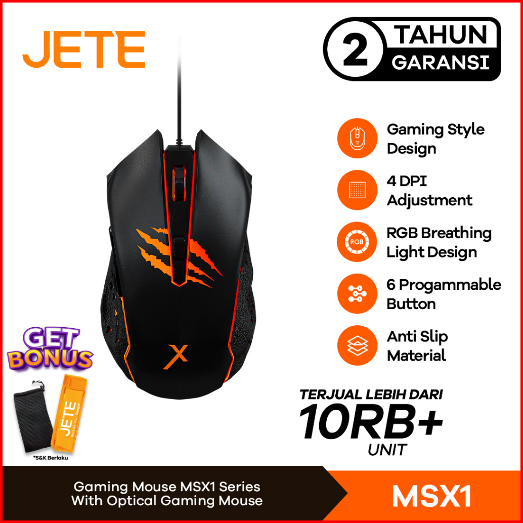 Jete Msx1 Mouse Gaming Kabel Rgb 6 Buttons Dpi 1200-3600 Garansi 2 Tahun