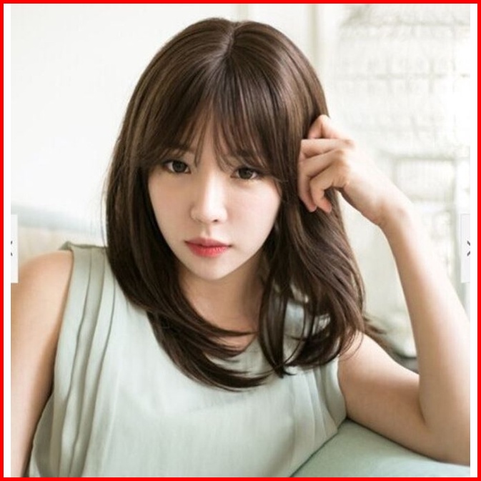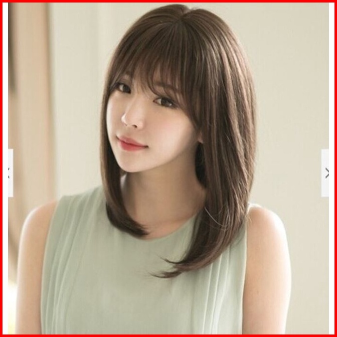 Wig Rambut Wanita Sintetis Lurus Natural Poni Fashion Korea