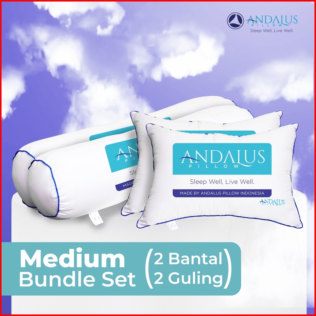 Paket Bundling 2 Set Bantal Guling Tidur Andalus Medium Zipper Adjustable Refilling Pillow 100 Silicon Grade A