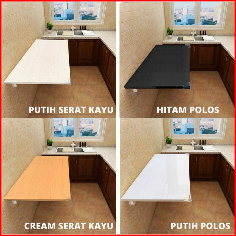 Meja Lipat Tempel Dinding Ukuran Plus Bracket 120x50cm 80x40cm 60x40cm 60x30cm 80x20cm Warna Hitam Putih Serat Kayu Pink