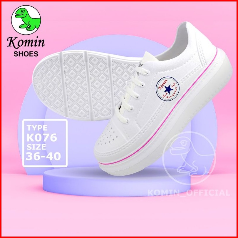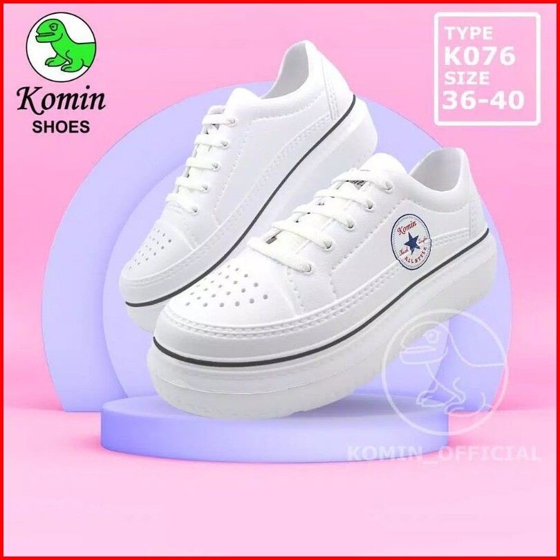 Sepatu Wanita Komin Putih 076 Sepatu Wanita Sneaker Tali Sepatu Wedges